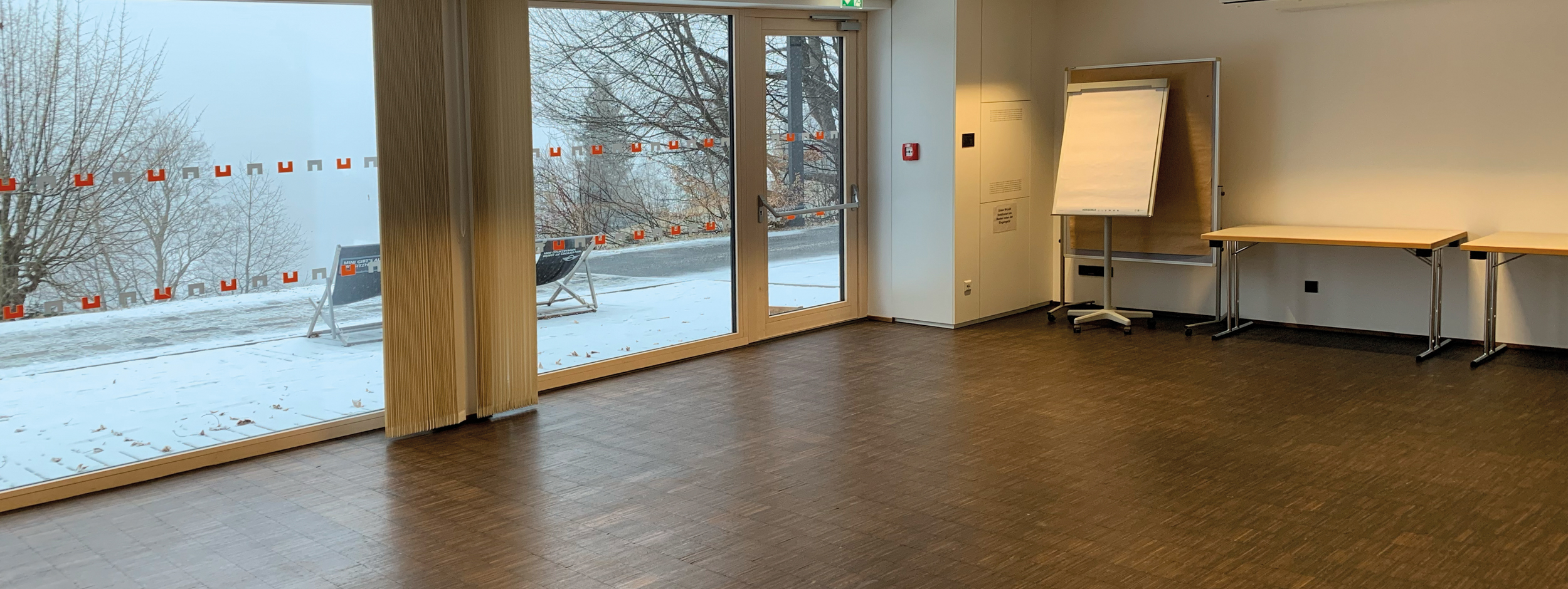 Heller, barrierefreier Seminarraum mit West-Terrasse.